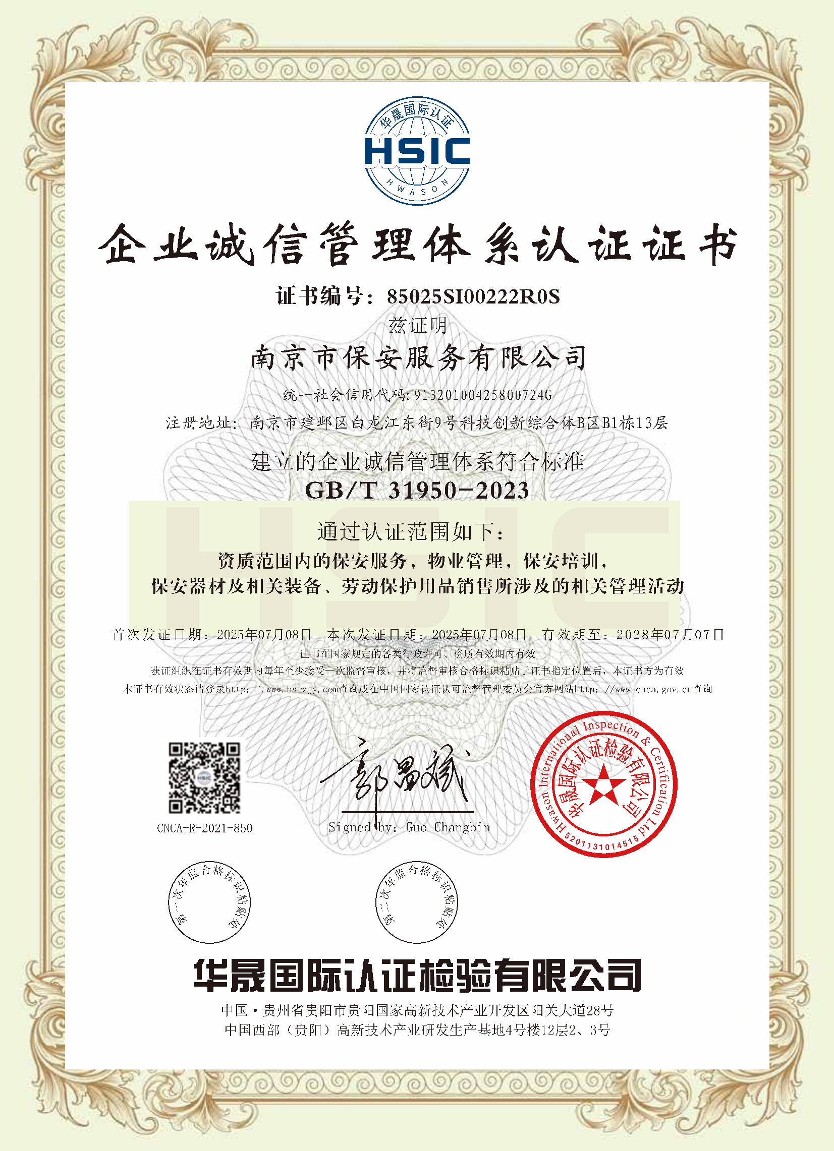 Established in April 1987, Nanjing Security Service Co., Ltd. is a large state-owned security enterprise with a long history of security operation and rich security experience. Now it is a managing director of both? China Security Association and Jiangsu?Security Association, vice president of? Nanjing Security Association, one of the top class security service companies in Jiangsu Province.